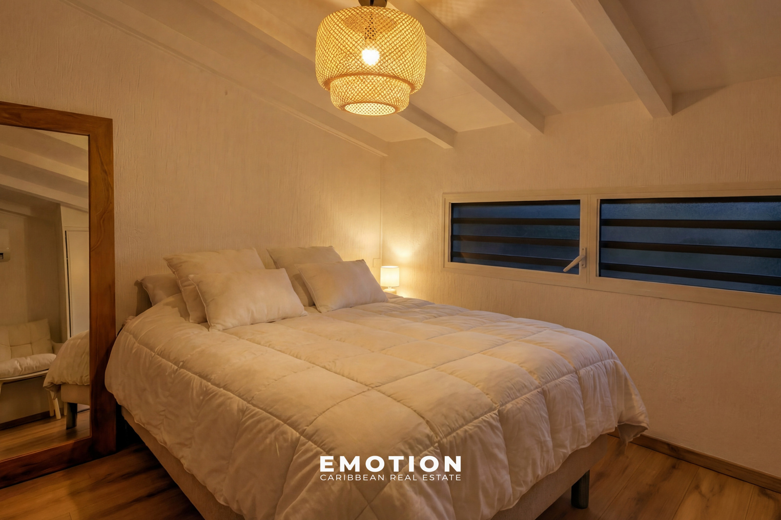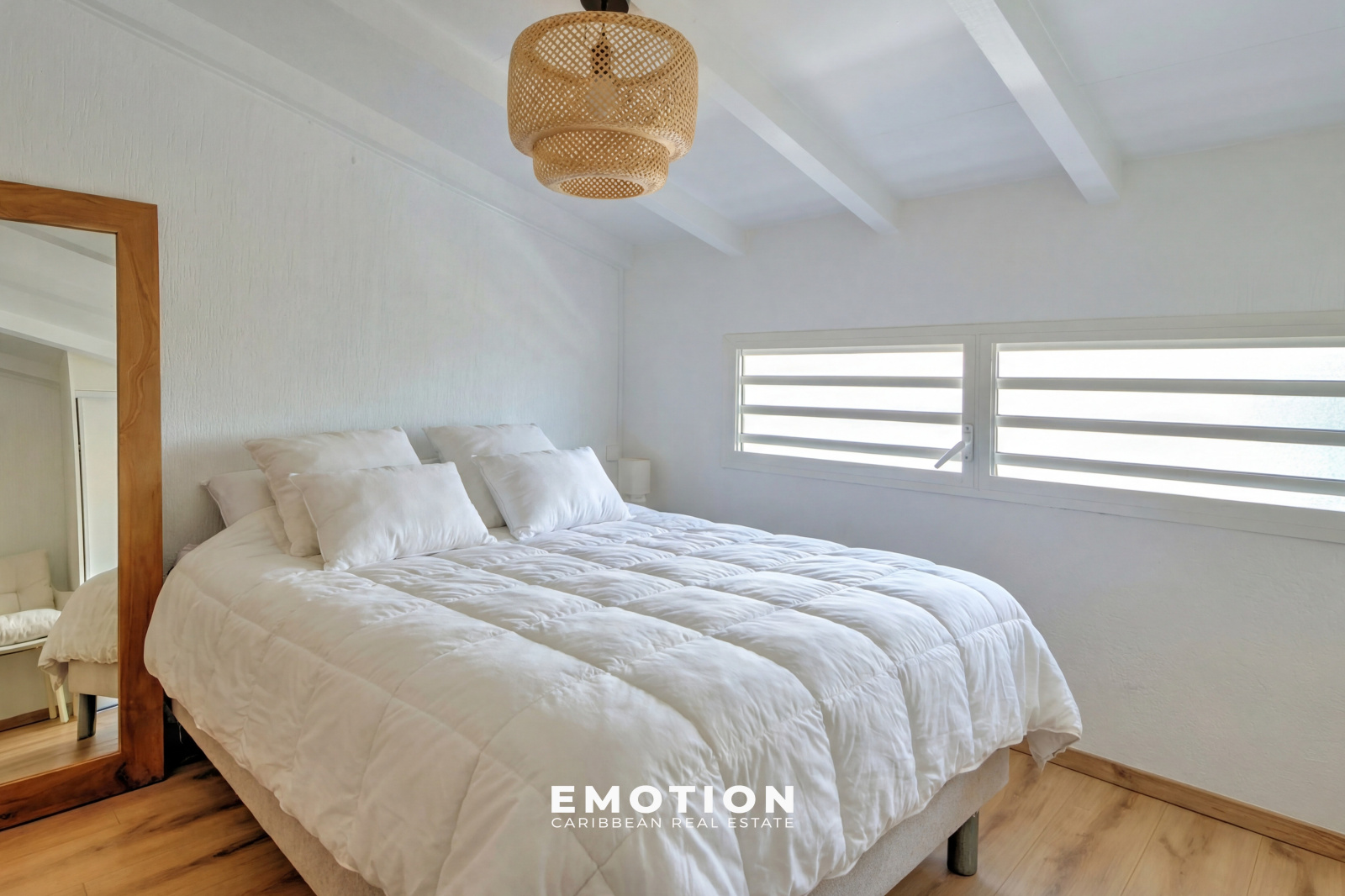 Le cabinet Emotion Real Estate Guadeloupe vous propose à la vente, à l’abri des risques de submersion, au 2e et dernier étage d’une résidence sécurisée avec portail électrique, un nouveau bien mitoyen d’un seul côté, offrant une vue panoramique à 180° sur la mer et les marinas du Gosier. Situé au sommet d’un morne, ce bien bénéficie d’un emplacement exceptionnel, à seulement cinq minutes à pied de la marina, des commerces, restaurants et supermarchés.