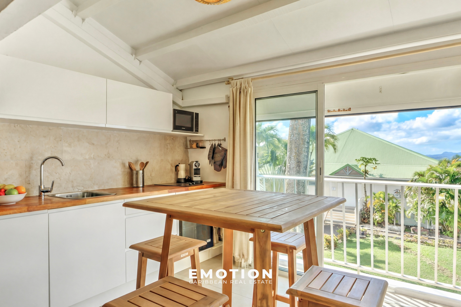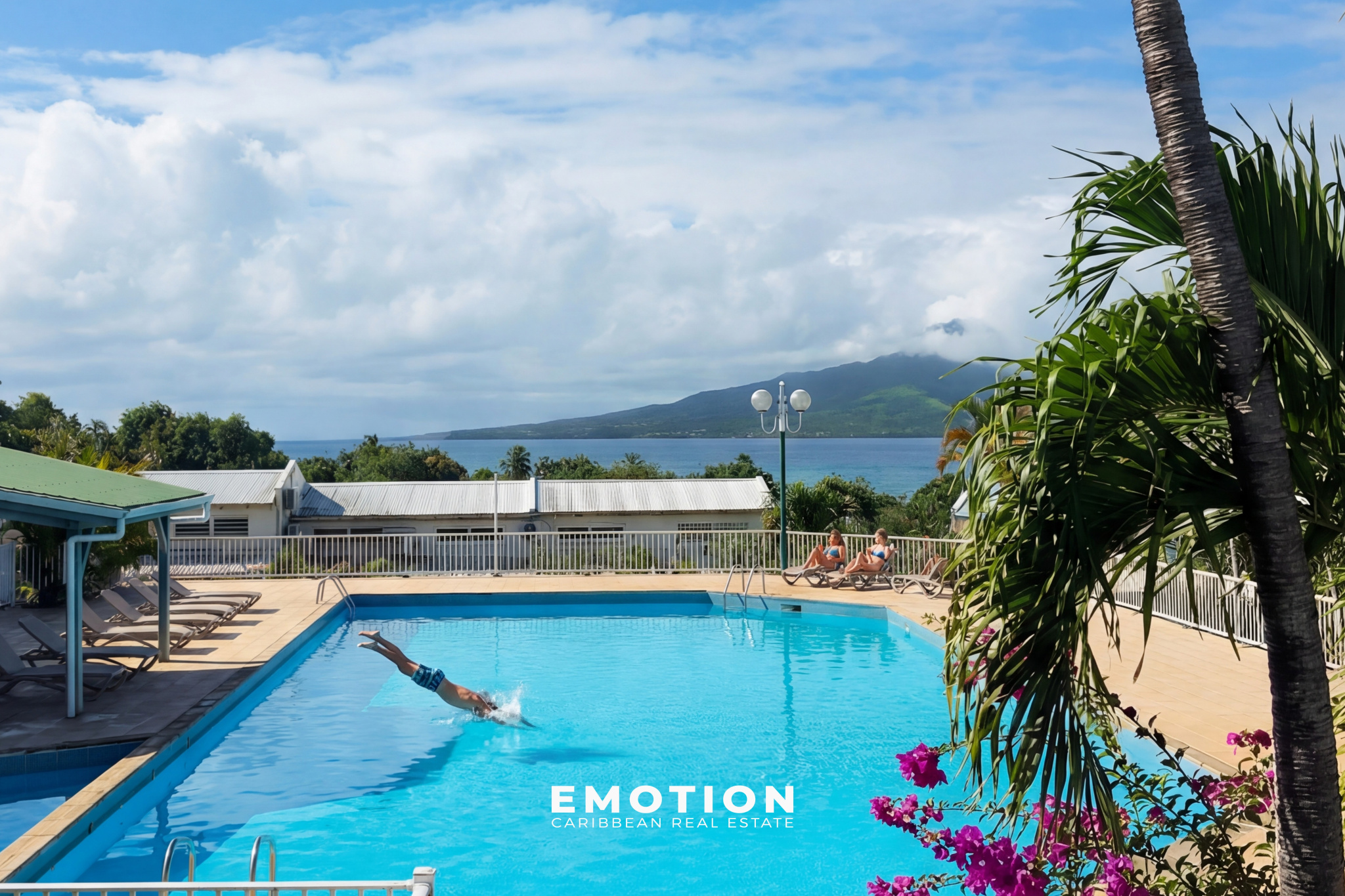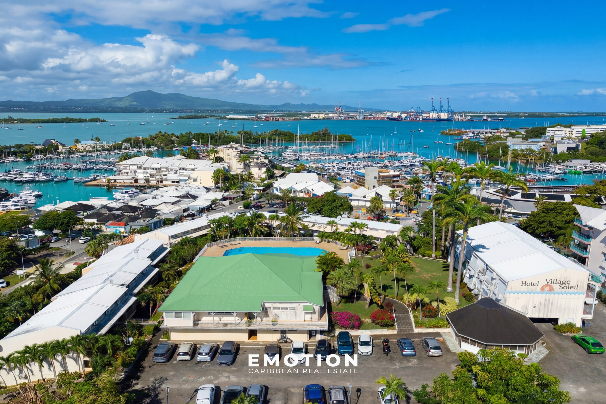 La résidence, sécurisée et bien entretenue, est idéale pour profiter pleinement du cadre de vie unique de la Marina du Gosier. Dominant la baie depuis son emplacement en hauteur, elle permet d’admirer chaque jour des panoramas spectaculaires et aux premières loges pour l’arrivée de la Route du Rhum.