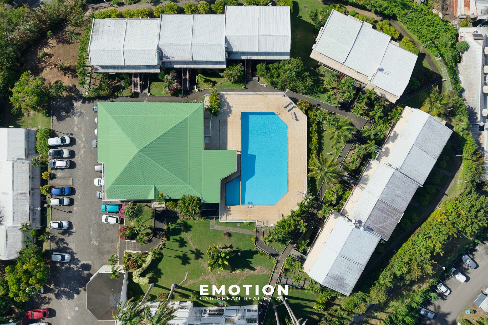 Le bien se compose en annexes : d’un système de citerne privative couplé à une pompe, permettant un approvisionnement autonome et continu en eau, 24h/24 et 7j/7, de jardins tropicaux, de places de parking libres en extérieur sécurisées avec portail électrique, couvertes et non couvertes, ainsi que d’une grande piscine commune.