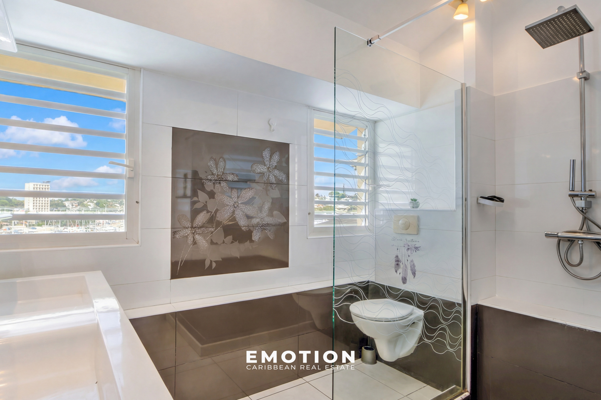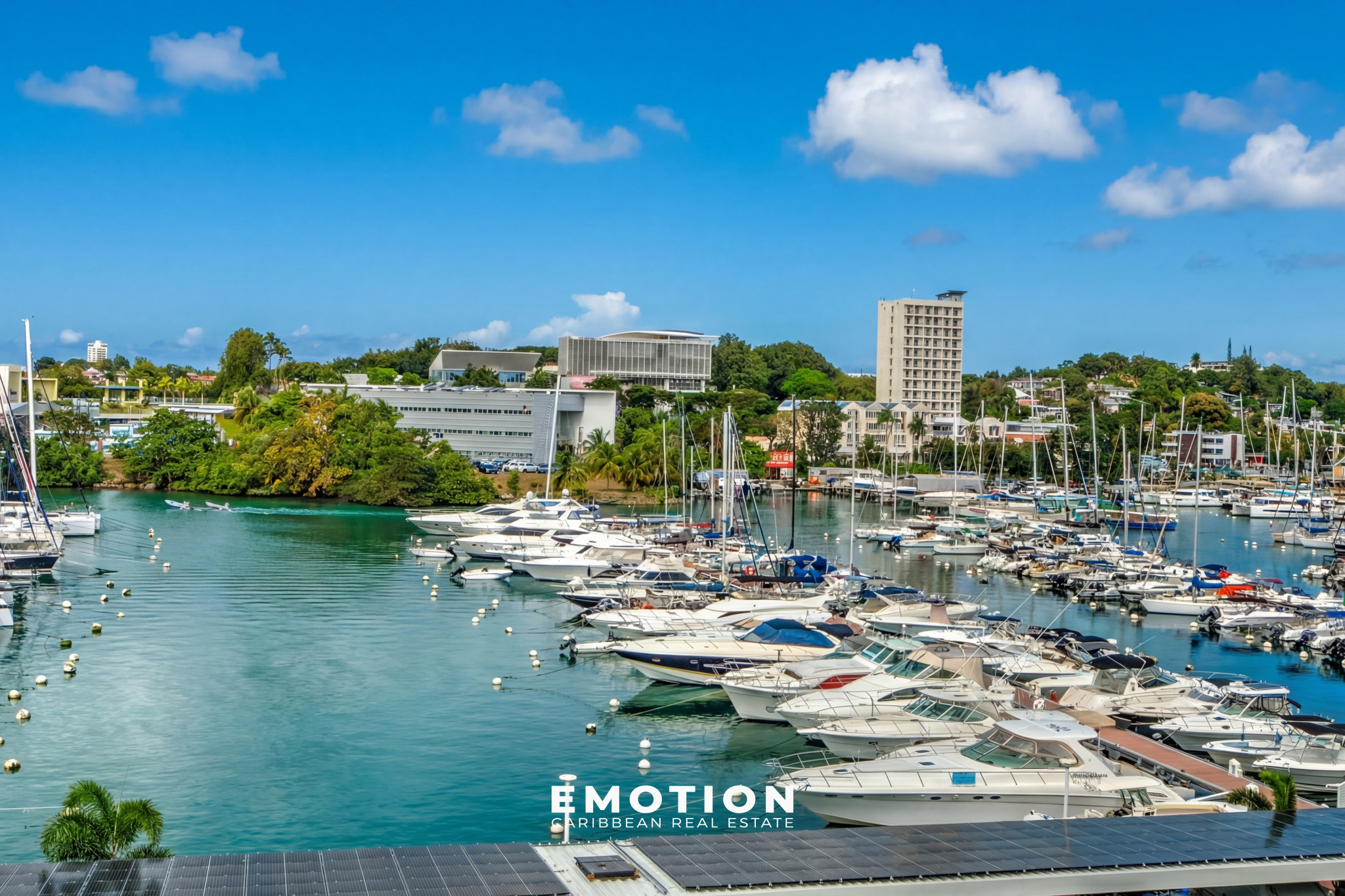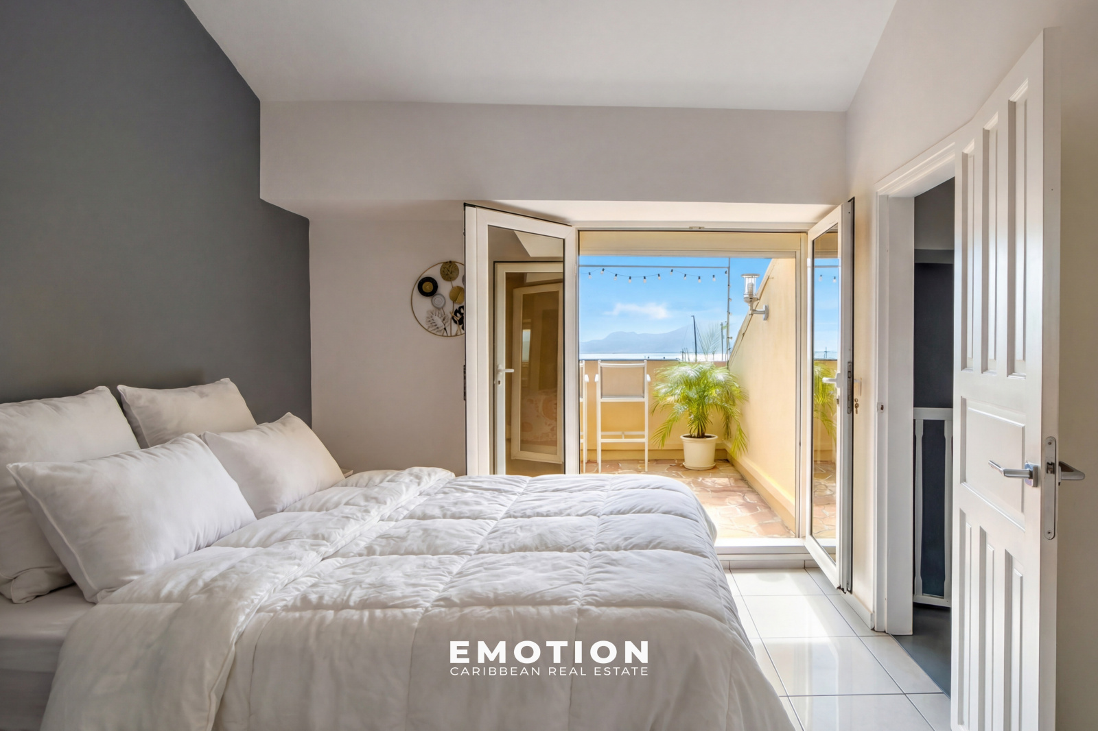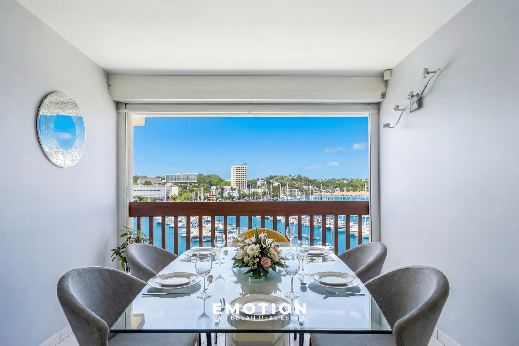 Le cabinet Emotion Real Estate Guadeloupe vous propose à la vente, à l’abri des risques de submersion, en angle et au 5e et dernier étage d’une résidence sécurisée avec portail électrique, un bien mitoyen d’un seul côté, offrant une vue panoramique à 180° sur la mer et les marinas du Gosier. Ce bien bénéficie d’une vue et d’un emplacement exceptionnels. Accès direct à la marina, commerces, restaurants et supermarchés.