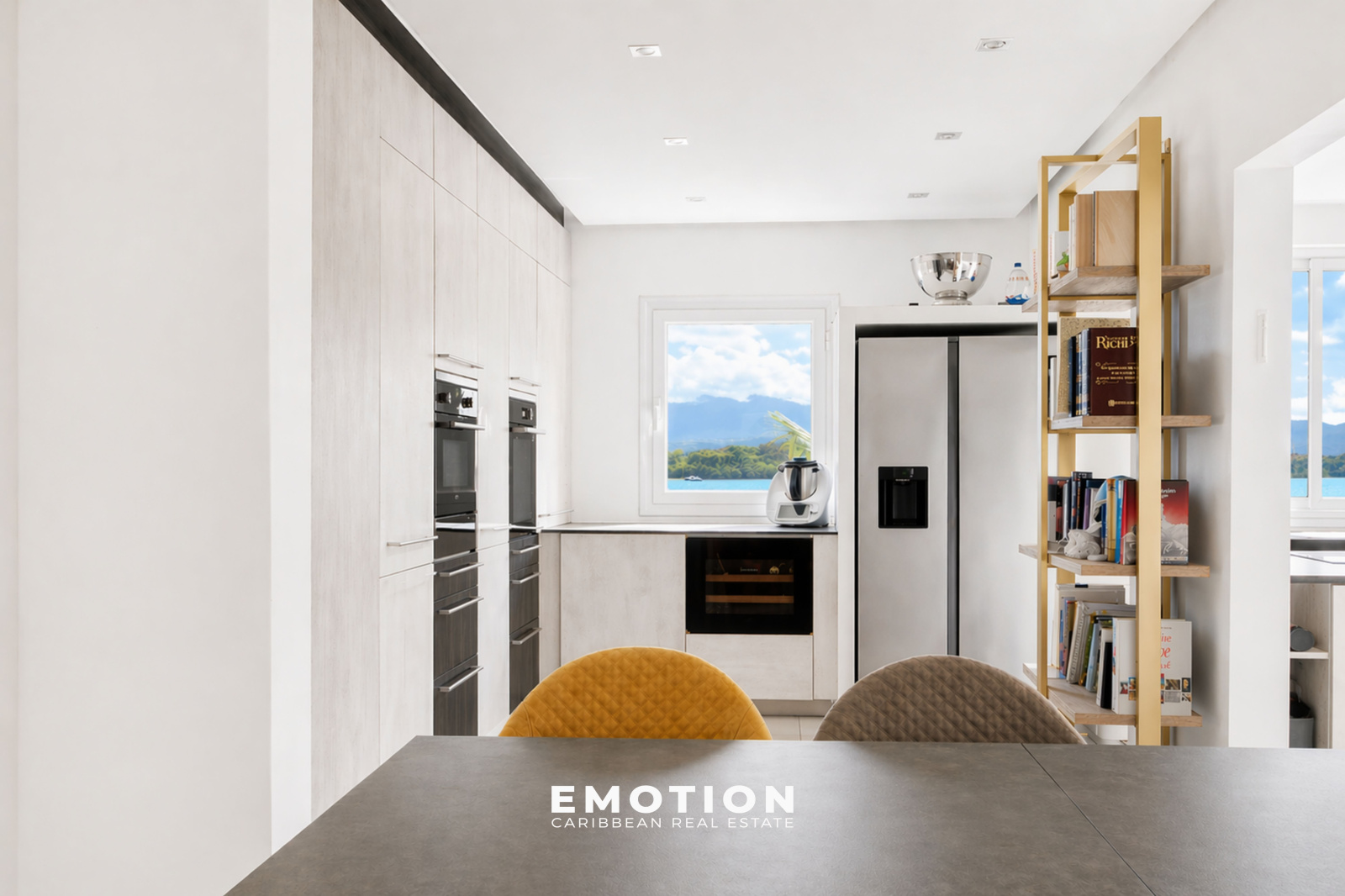 Le bien se compose d’une entrée, d’un séjour de 47 m² avec vue mer, ainsi que d’une cuisine ouverte de 25 m².