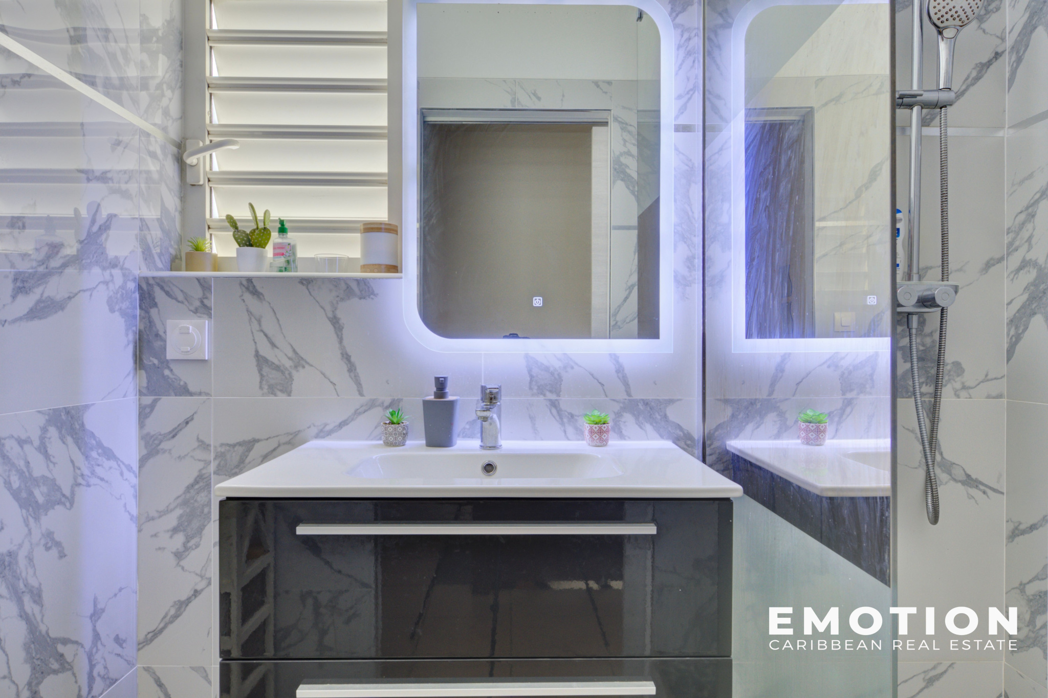 La résidence, sécurisée et bien entretenue, est idéale pour profiter pleinement du cadre de vie unique de Baie-Mahault – Gourdeliane.