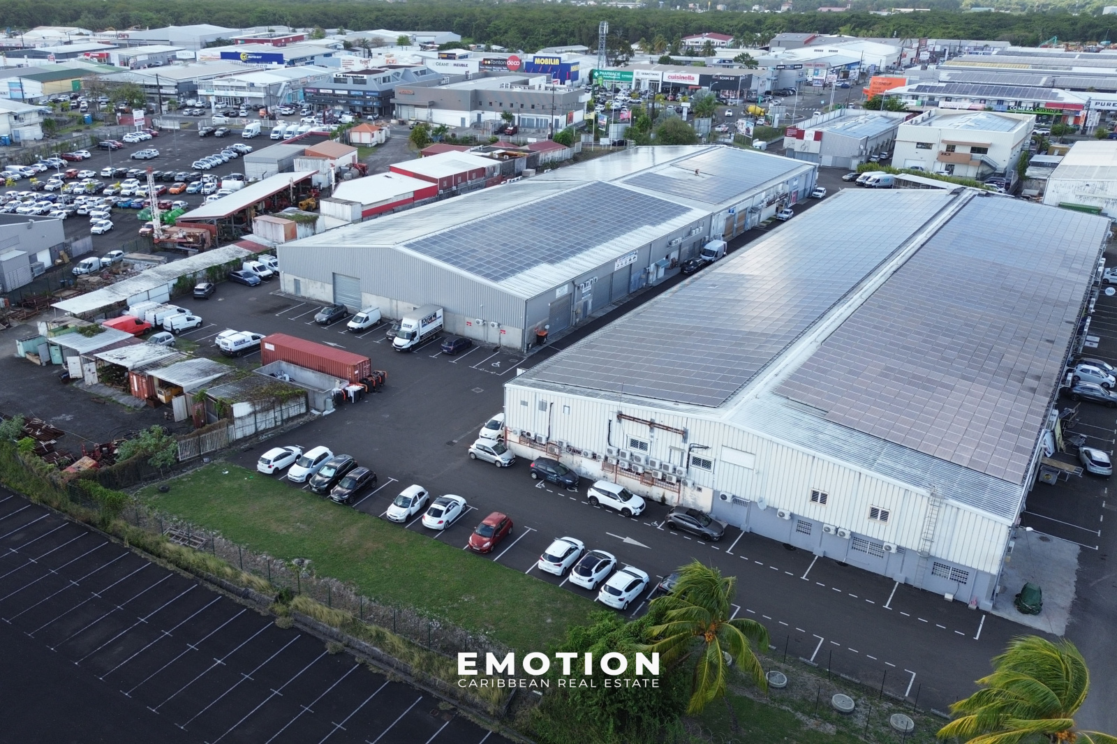 Le cabinet EMOTION Real Estate Guadeloupe, vous propose un immeuble de bureaux sur la commune de Baie-Mahault au coeur de Jarry .