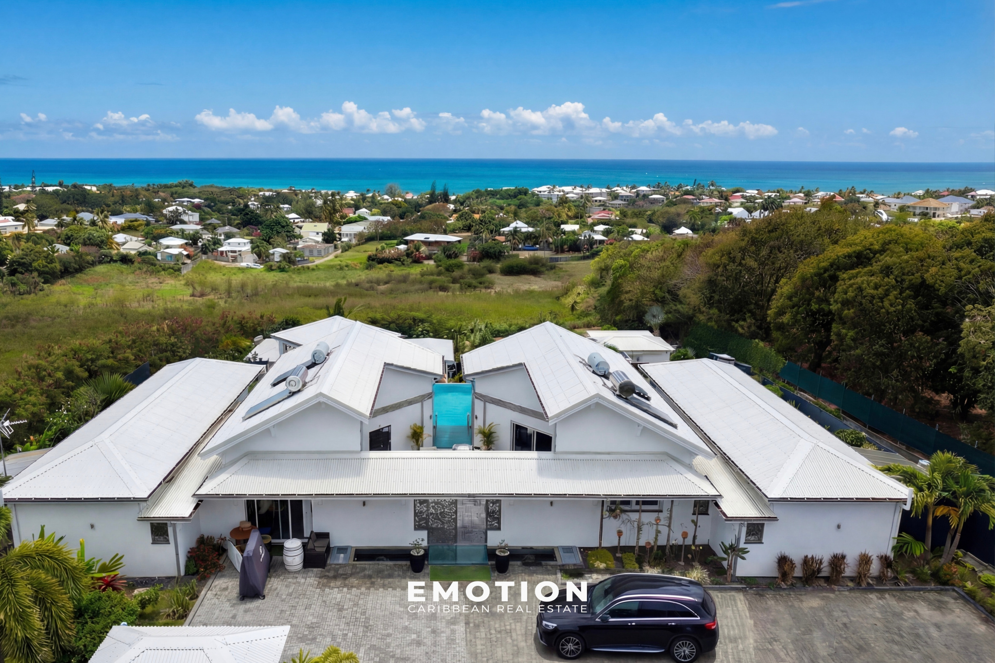 Le cabinet Emotion Guadeloupe vous propose à la vente, sur le secteur recherché de Saint-François, une villa d’architecte contemporaine offrant une vue mer panoramique à 180°, dans un environnement calme et privilégié à seulement quelques minutes des plages, du golf et de la marina.