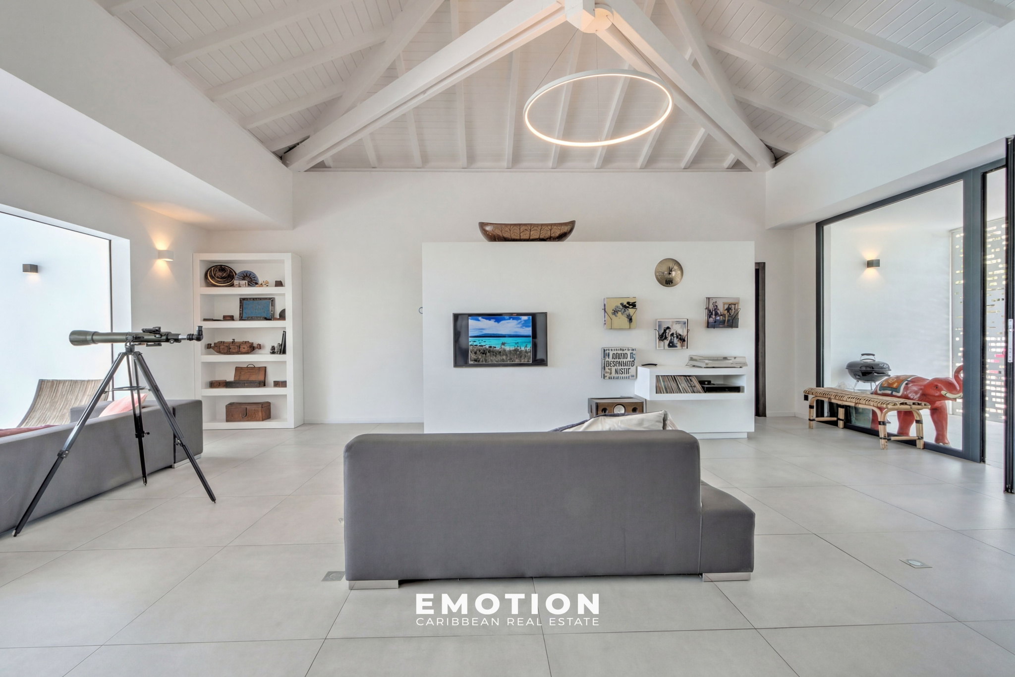 L'espace séjour s'ouvre sur la terrasse couverte de 40 m² permettant de profiter de déjeuners en extérieur.