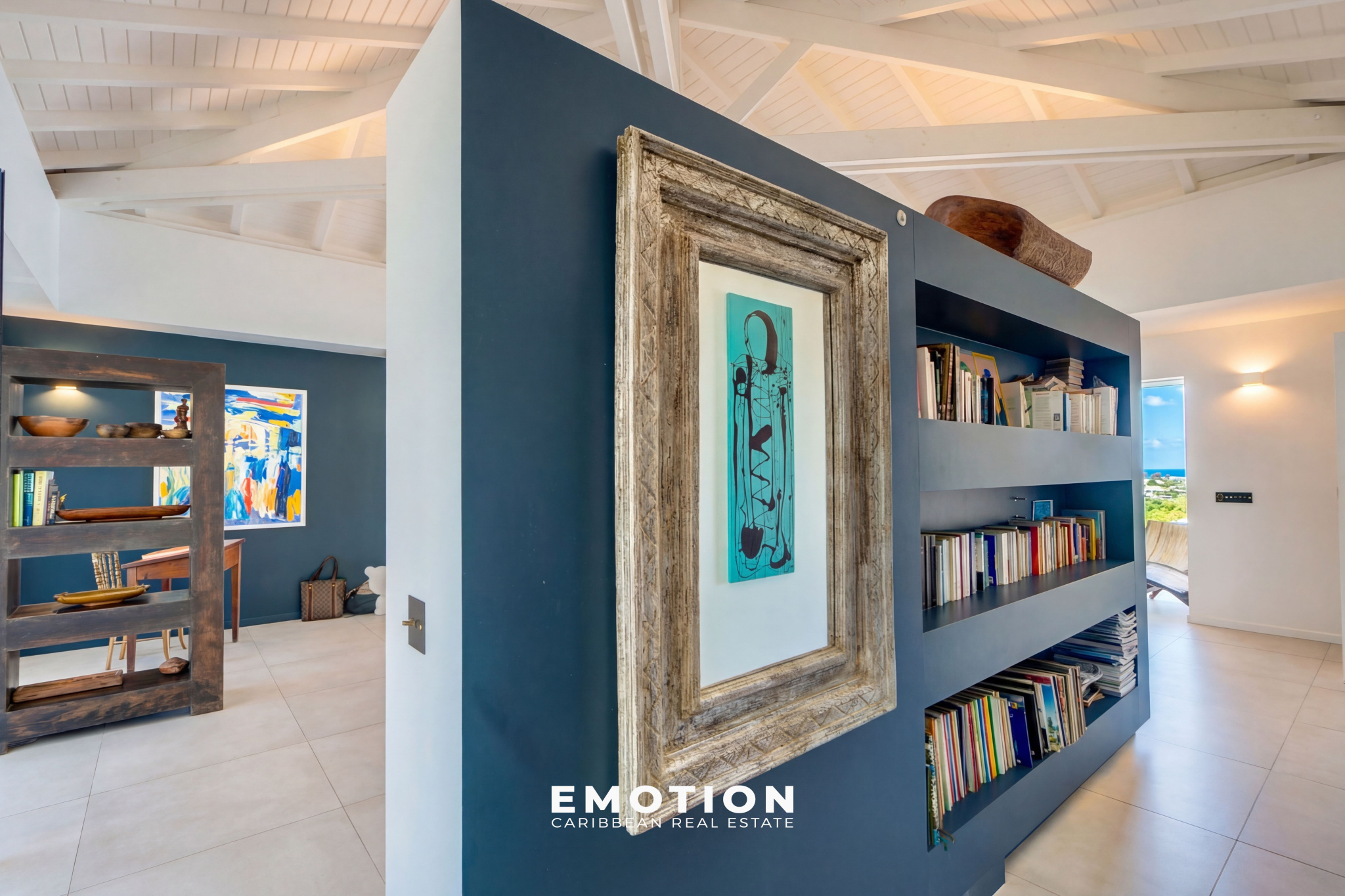 Depuis le salon nous accédons aux deux espaces nuits distincts.