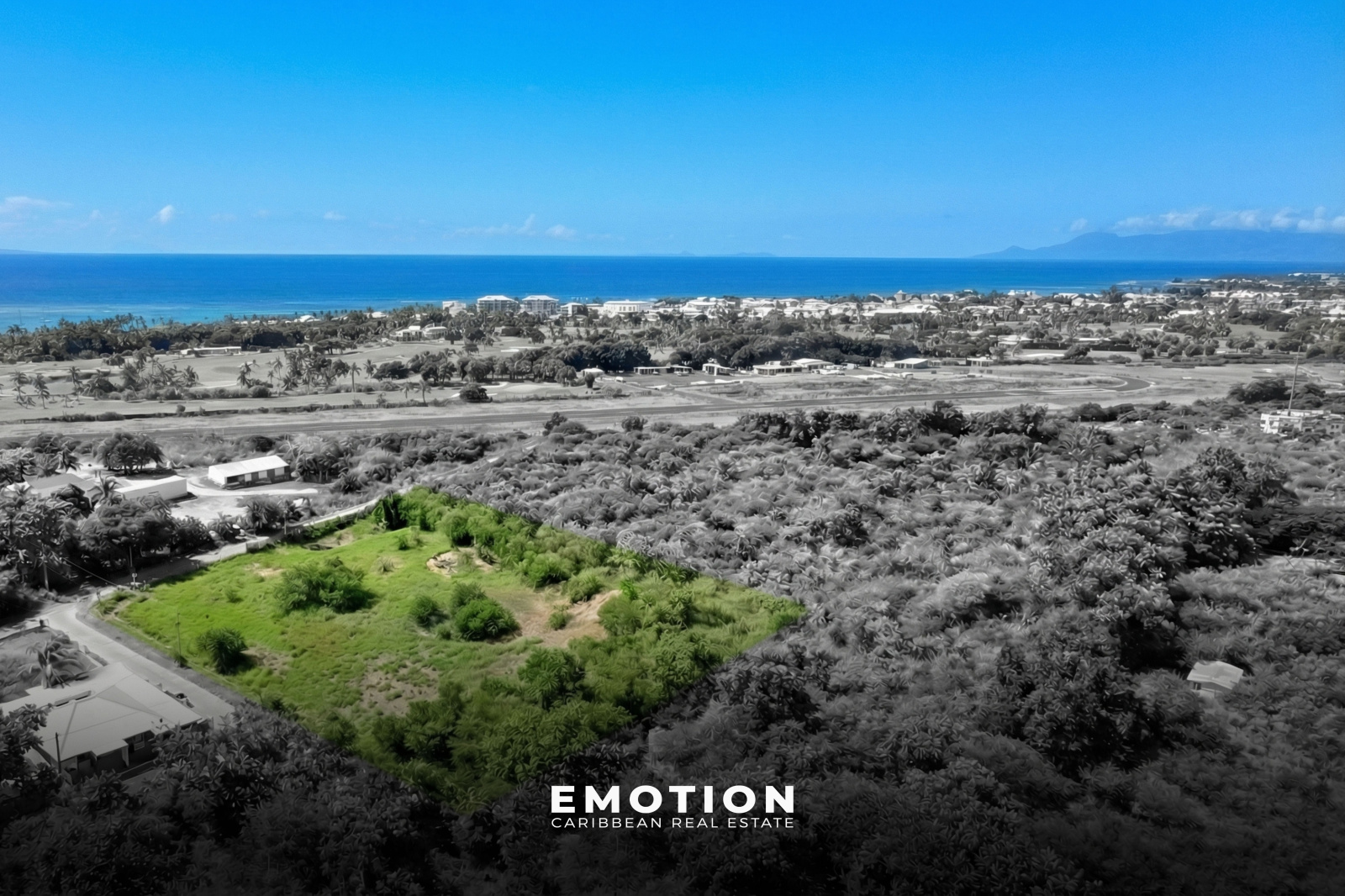 Le Cabinet EMOTION Real Estate Guadeloupe, vous présente un très beau terrain de 2 000 m² dans le secteur de la Coulée à proximité du Golf, des plages et du centre ville.