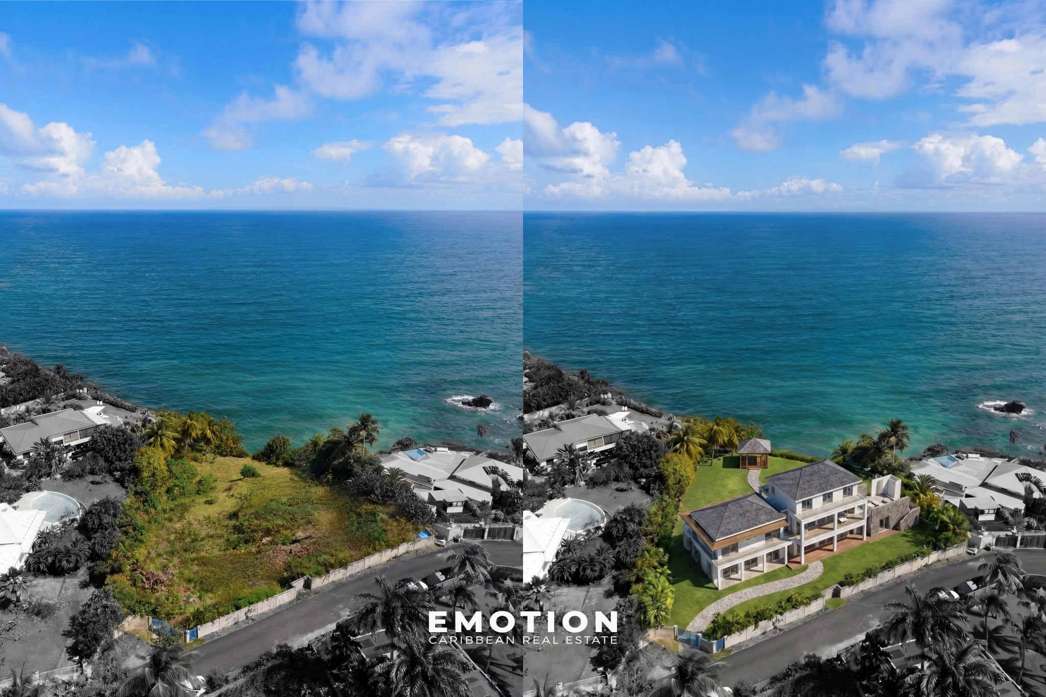 Le Cabinet EMOTION Guadeloupe vous présente un nouveau bien à la vente, un terrain exceptionnel de 2 172 m², plat et idéalement situé en première ligne. Dominant la mer depuis le haut d’une falaise, ce bien rare offre une vue panoramique à 180° à couper le souffle, un cadre unique pour un projet de prestige.