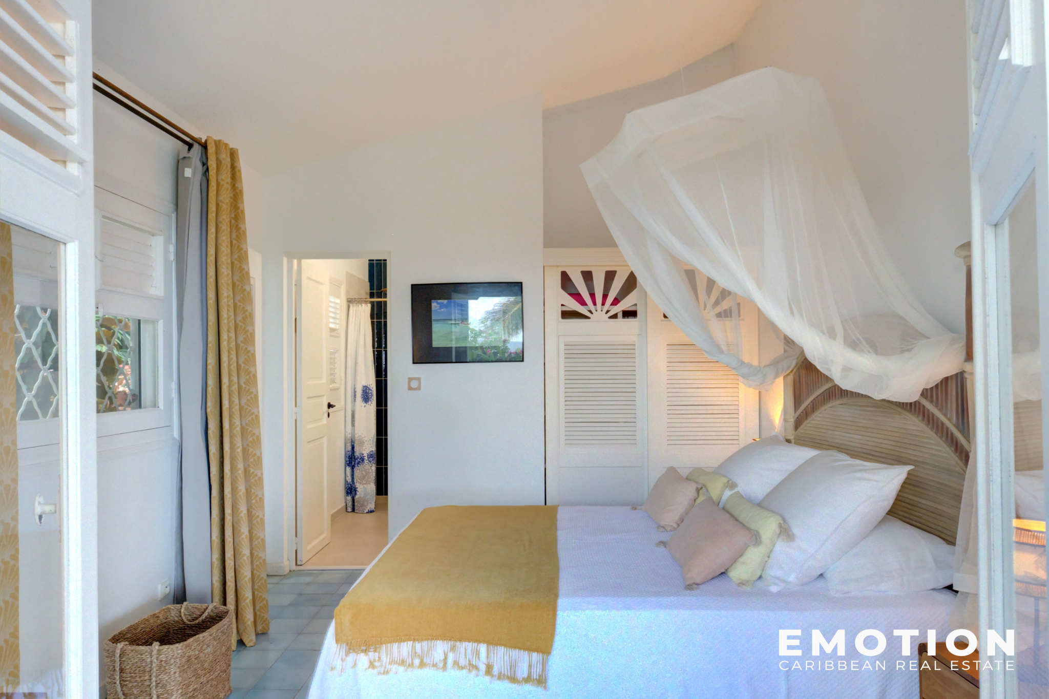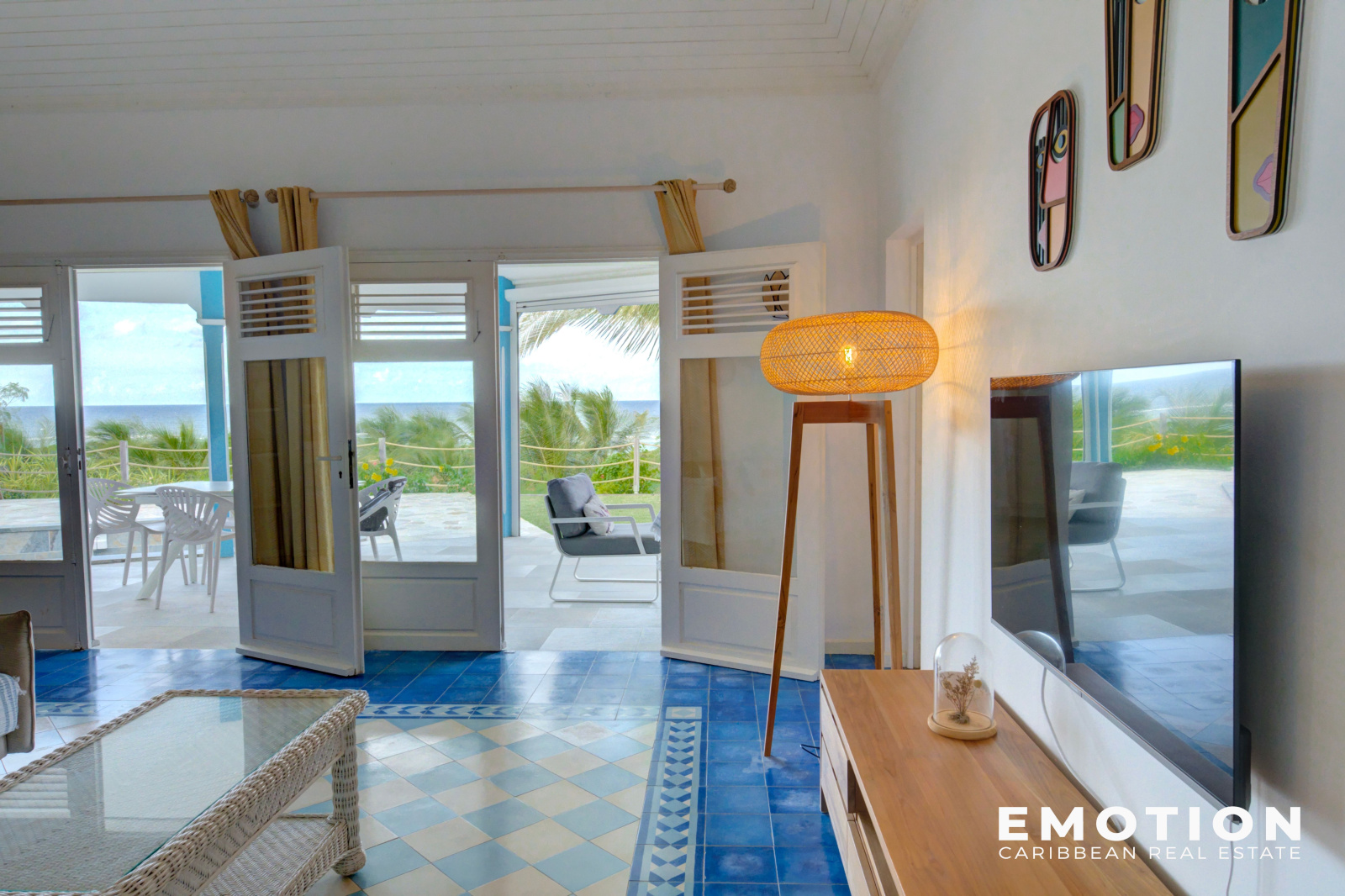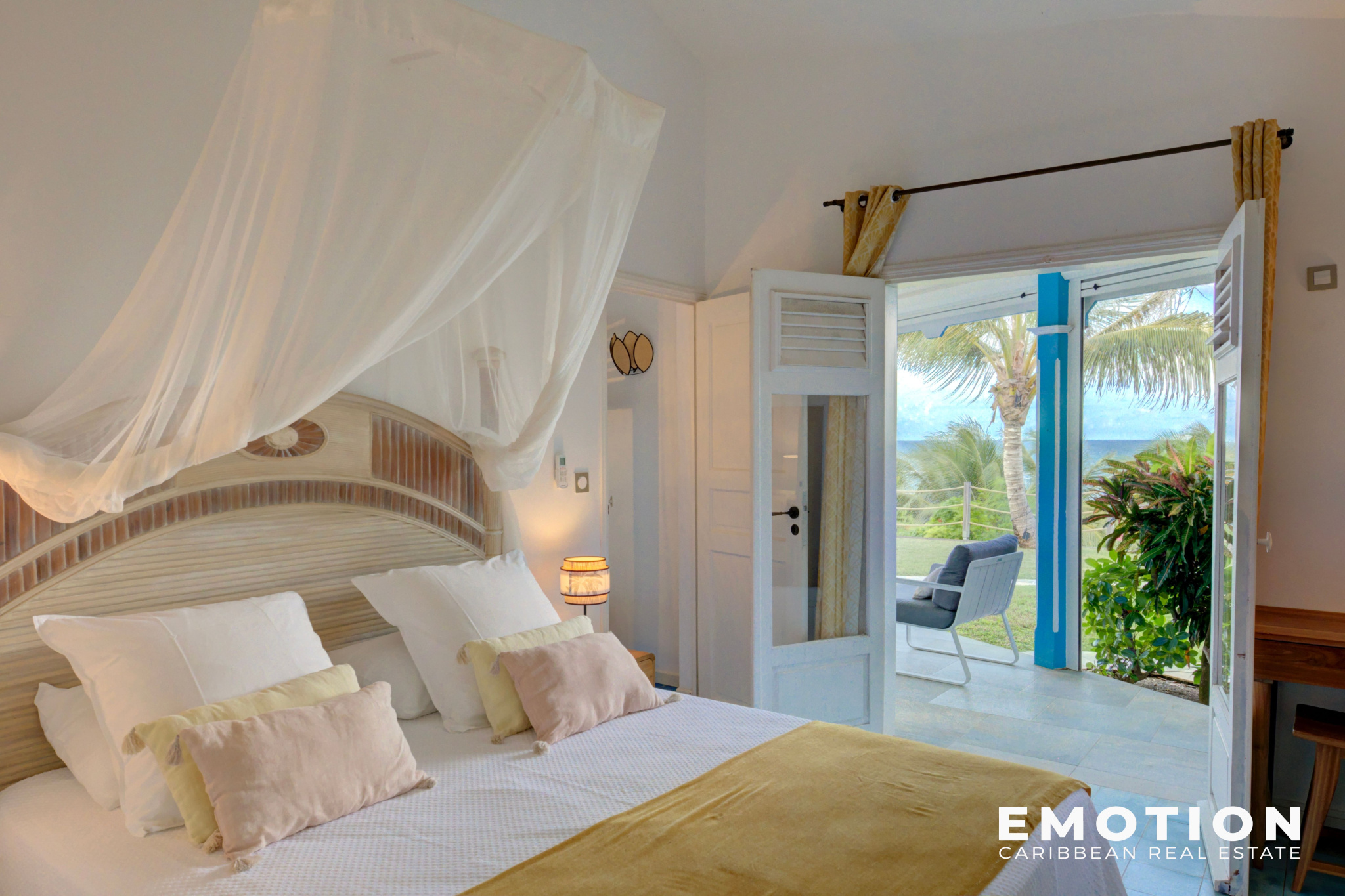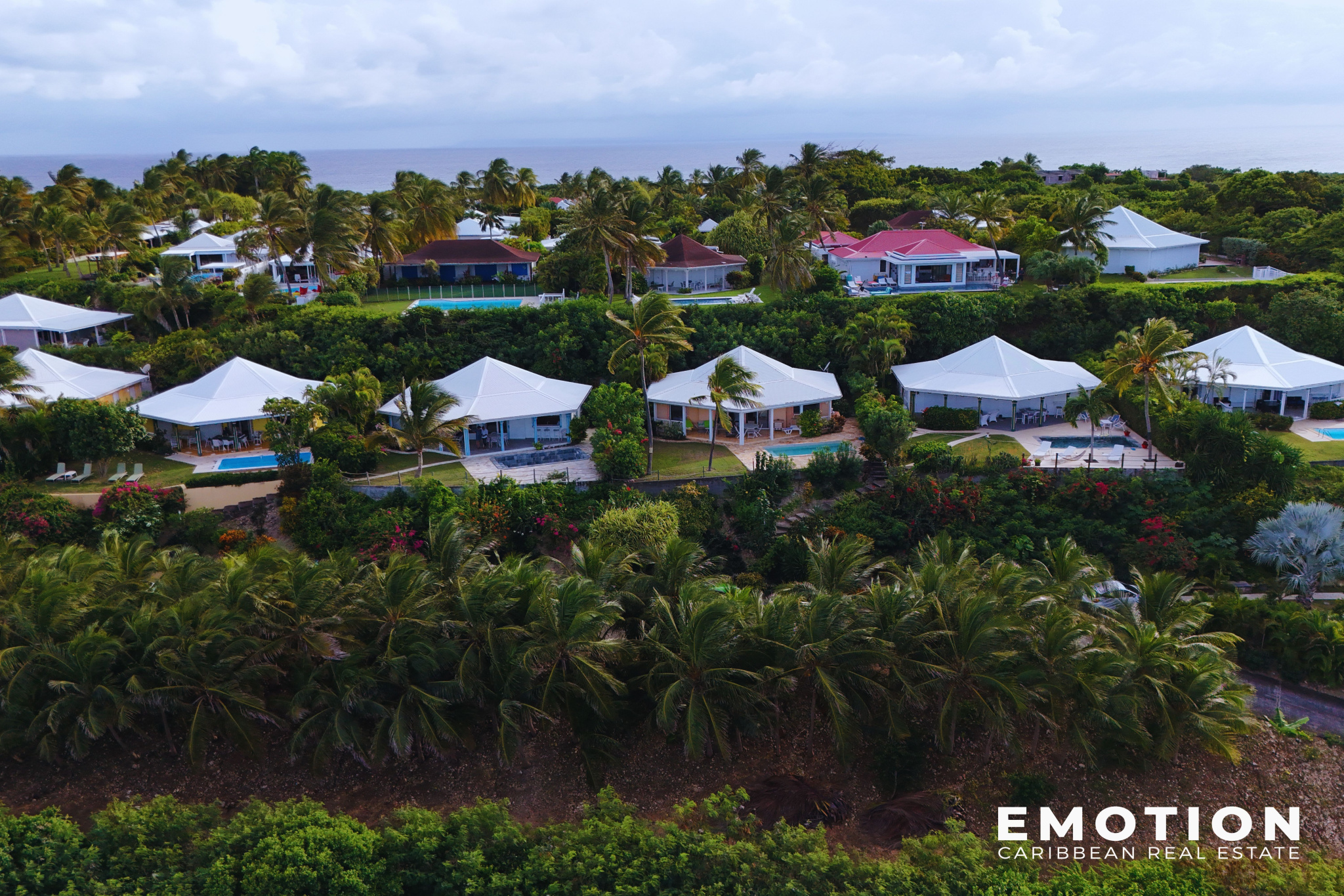 Au sein d'une petite copropriété sécurisée de 19 lots avec gardien, cette propriété d'exception bénéficie d'un terrain de 417 m² et offre une vue mer spectaculaire en première ligne sur l'île de la Désirade.
