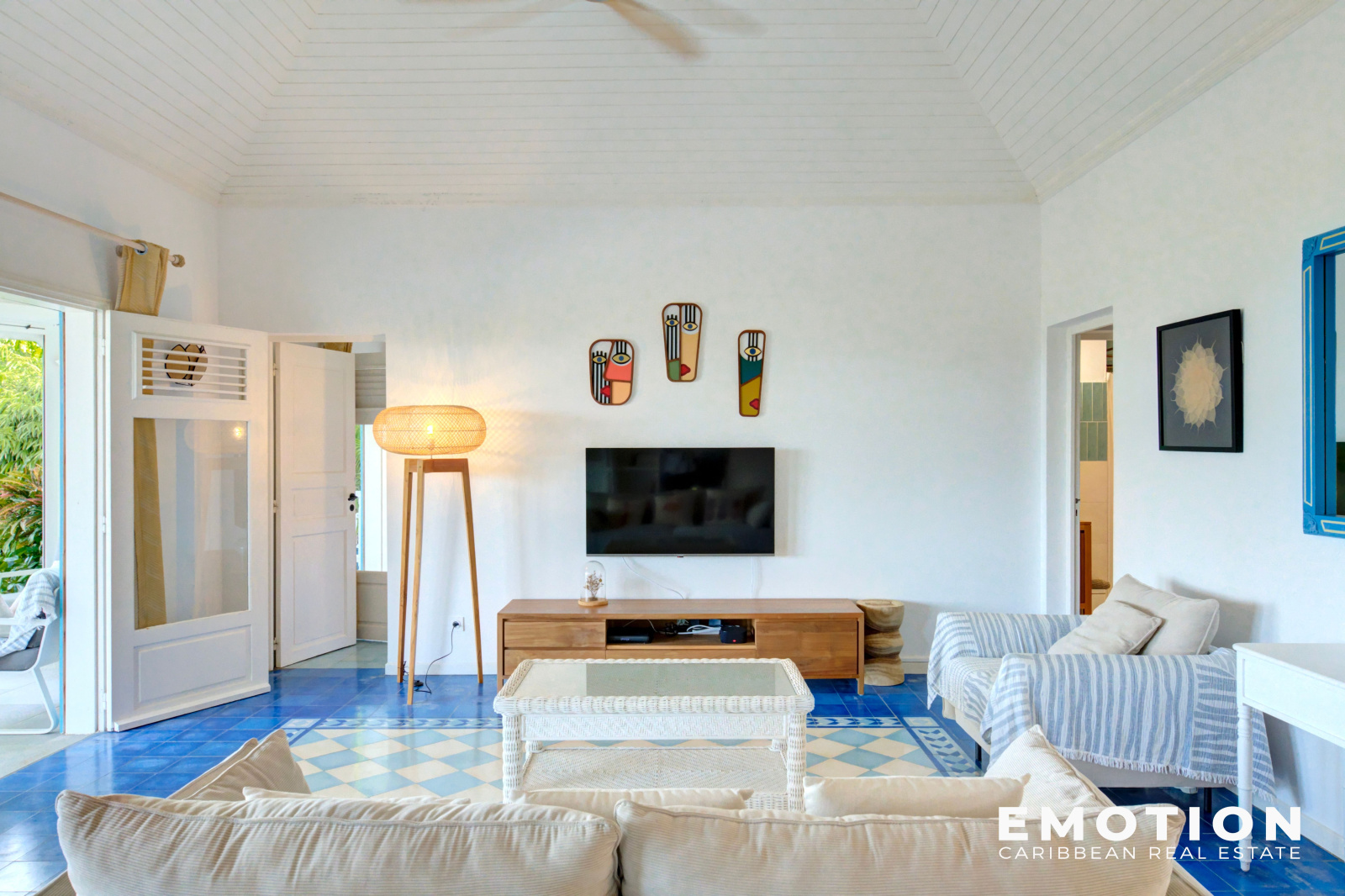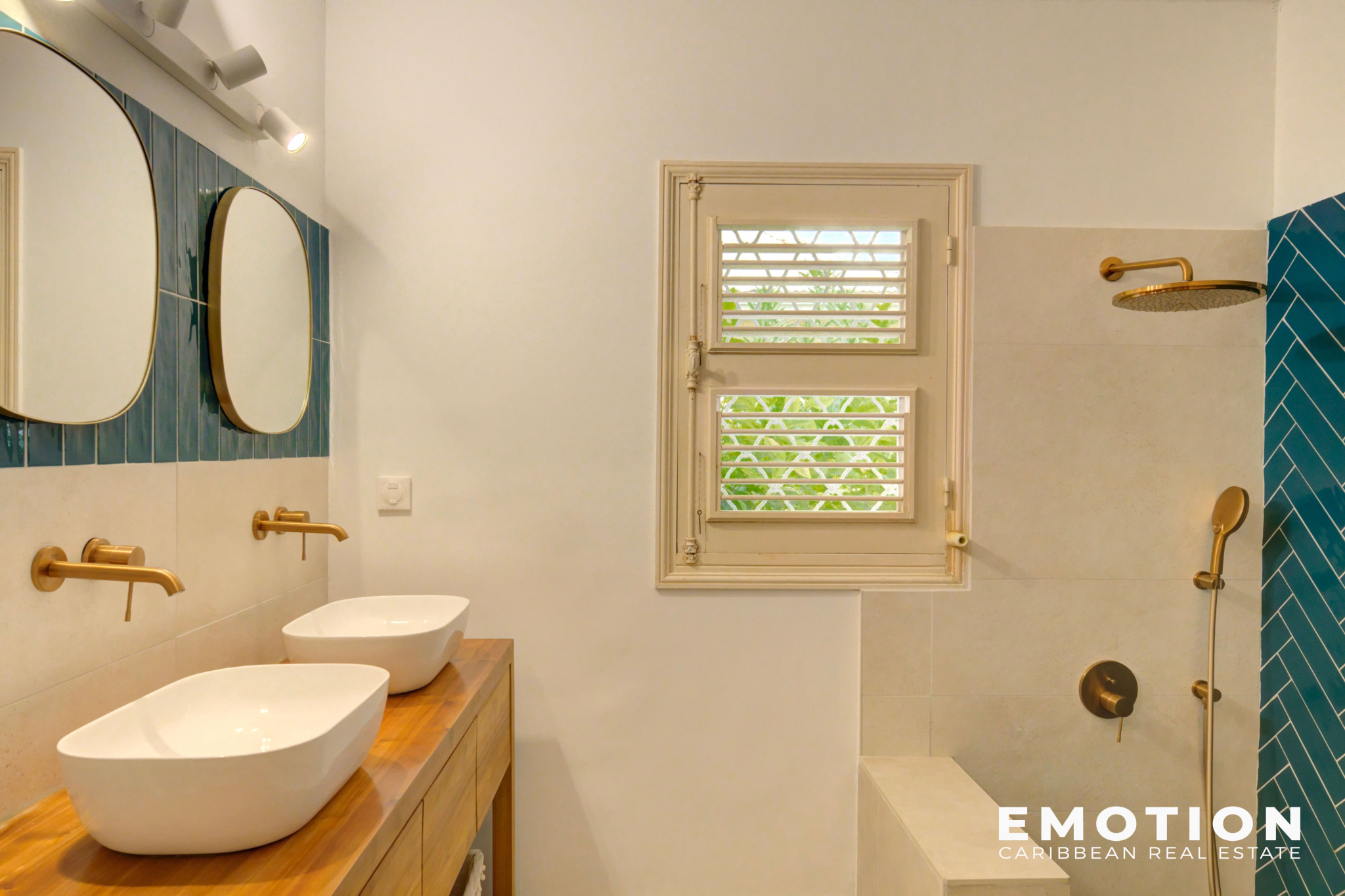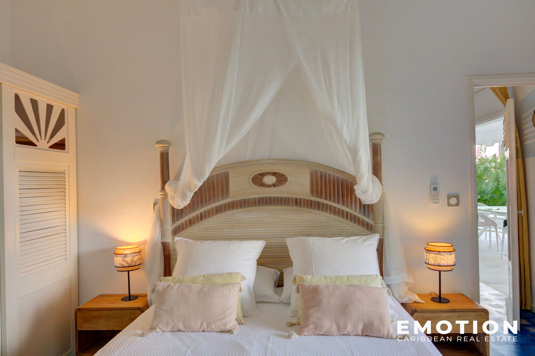 Au sein d'une petite copropriété sécurisée de 19 lots avec gardien, cette propriété d'exception bénéficie d'un terrain de 417 m² et offre une vue mer spectaculaire en première ligne sur l'île de la Désirade.