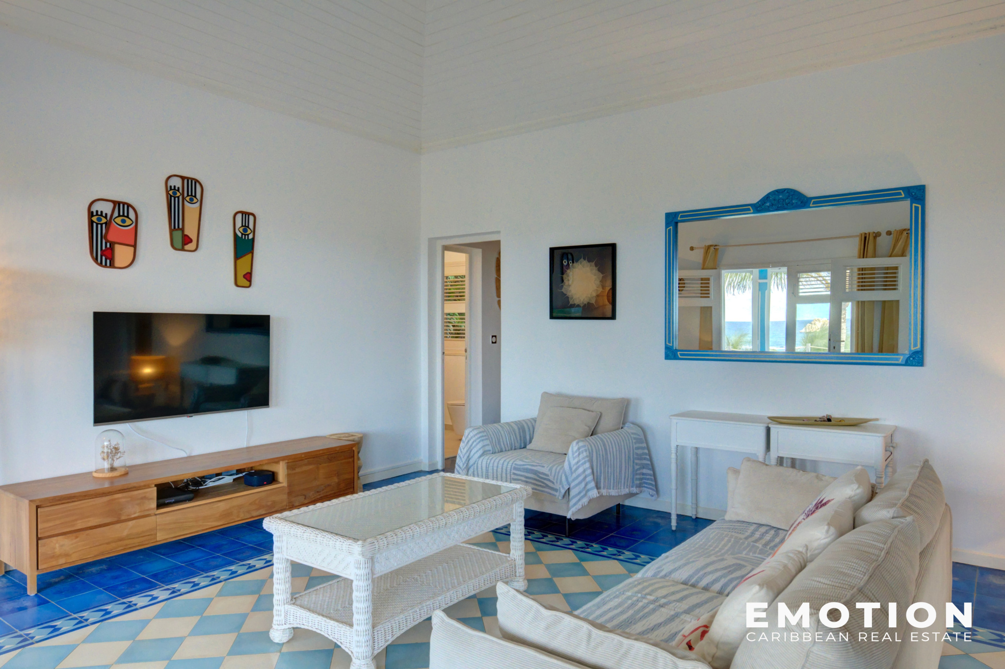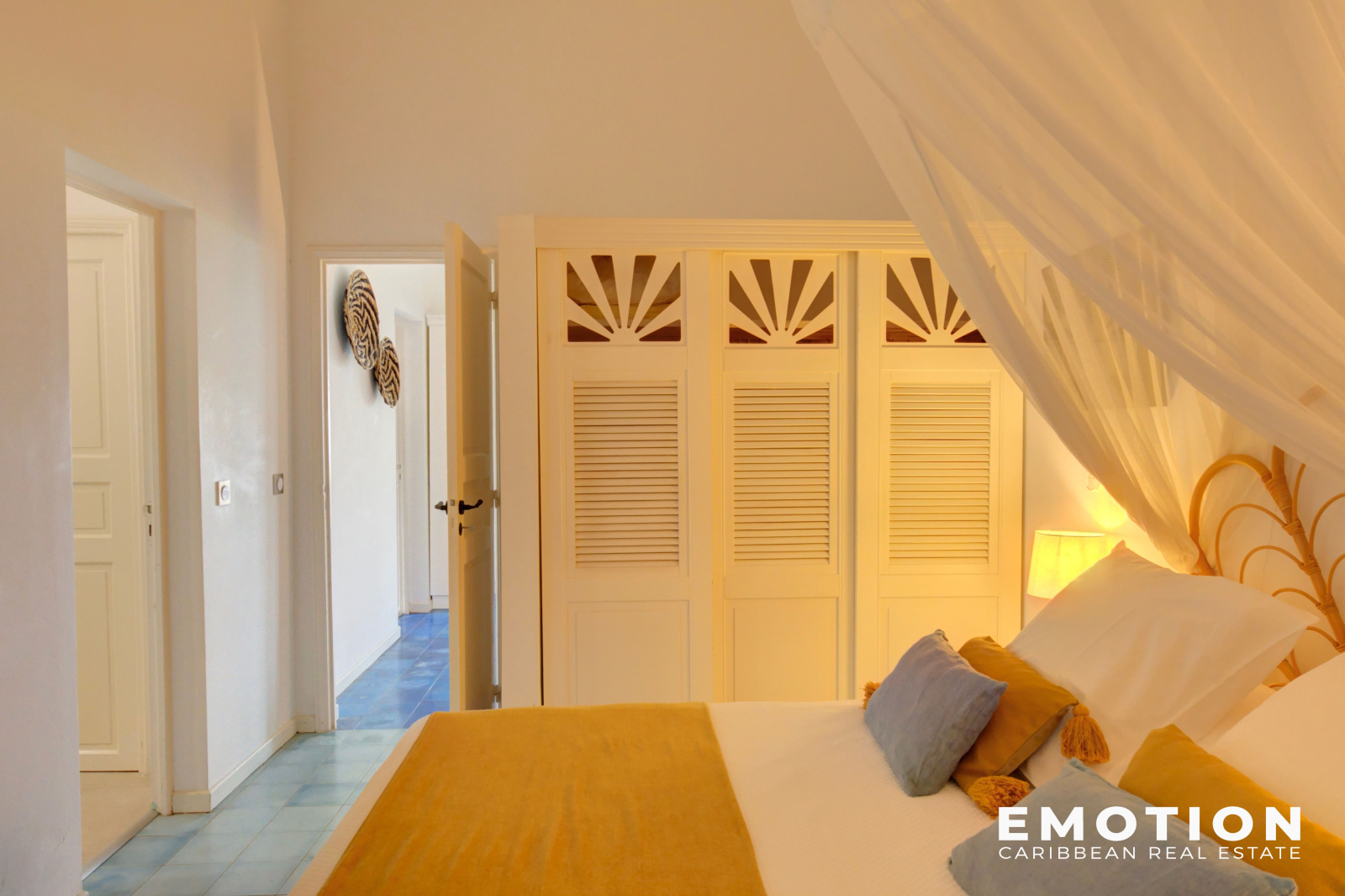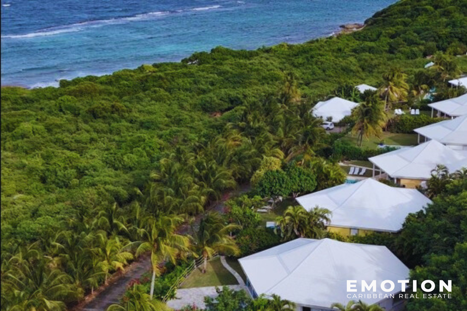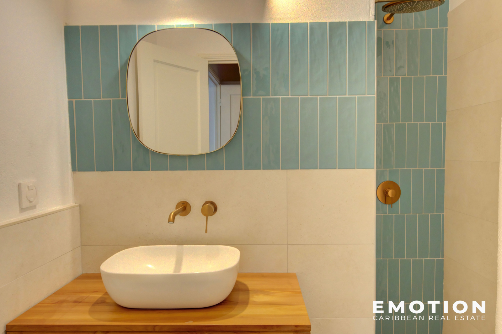 Au sein d'une petite copropriété sécurisée de 19 lots avec gardien, cette propriété d'exception bénéficie d'un terrain de 417 m² et offre une vue mer spectaculaire en première ligne sur l'île de la Désirade.