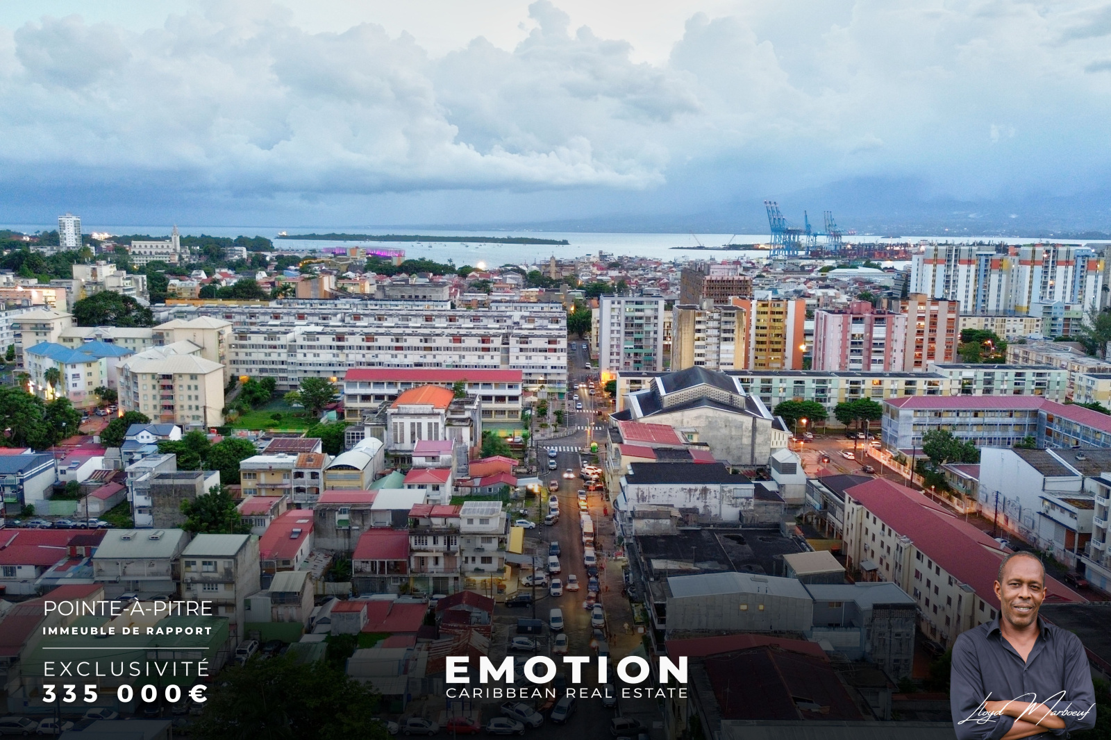 Le Cabinet EMOTION Real Estate Guadeloupe vous présente en exclusivité cet immeuble de rapport situé au cœur du centre-ville de Pointe-à-Pitre, à proximité immédiate des commerces, écoles et axes principaux. L’ensemble, édifié sur deux niveaux, développe une surface totale d’environ 408 m² et se compose de deux locaux commerciaux et un appartement T5. Chacun des lots est actuellement loué, garantissant un revenu locatif stable et une rentabilité attractive.