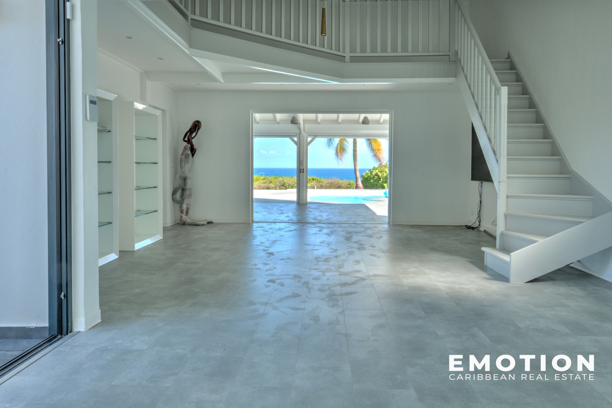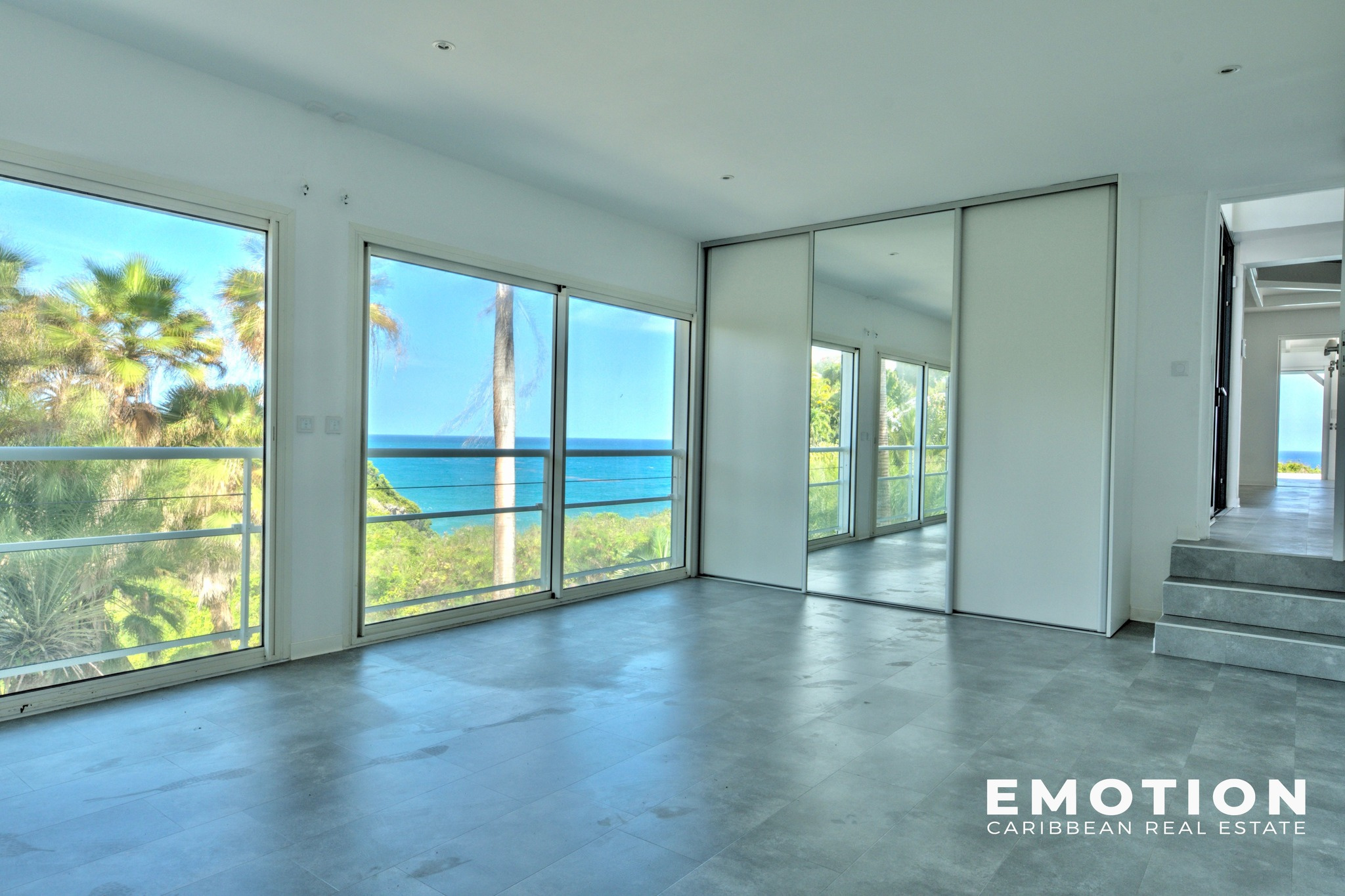 Le bien se compose au premier niveau : d’un vaste séjour lumineux et son espace mezzanine faisant office de bureau, une cuisine complètement équipée et aménagée donnant sur une terrasse couverte et la piscine extérieure, une première chambre avec une salle d'eau privative, une chambre parentale avec la vue sur la mer aussi avec placard de rangement et vue sur la mer.